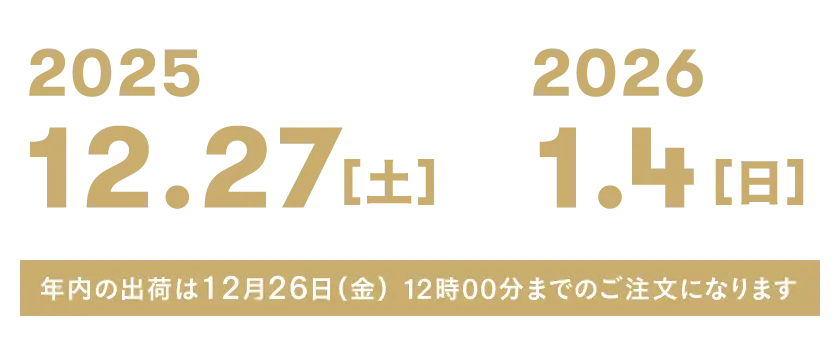 年末の最終出荷は、12/26(金)12時までのご注文とさせていただきます。