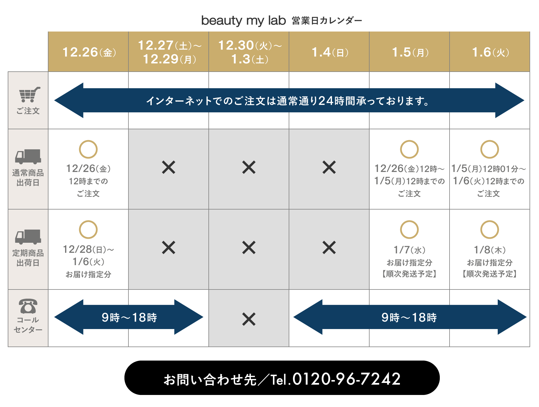 12/27(土)~1/4(日)の期間中のお問い合わせにつきましては、