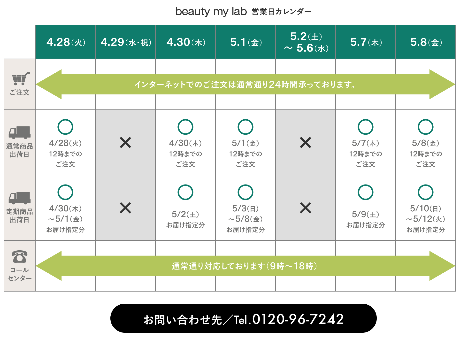 5/2(土)~5/6(水)の期間中のお問い合わせにつきましては、