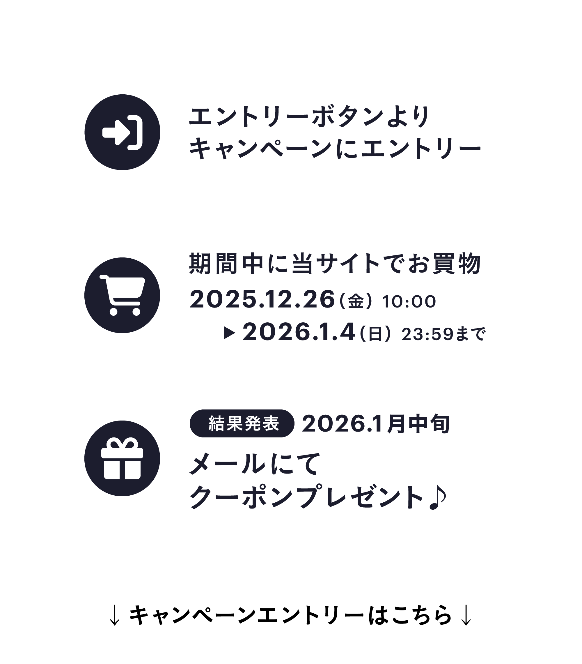 - ご当選した方には2026年1月中旬にメールにてクーポンをお送りします。