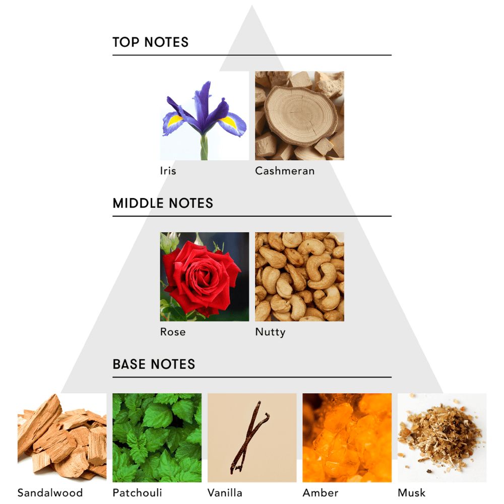 | 香り | パウダリーフローラルウッディ トップでは、静かな美しさを持つアイリスが舞うように肌に溶け込み、まろやかなカシュメランがしっとりとした温もりを感じさせます。 時間が経つとスモーキーで深みのあるサンダルウッドとパチュリのニュアンスへと変化し、まるで記憶の中で微かに香る煙のように香りがゆっくりと広がり、消えてゆく。 ベースのバニラとムスクが残すほのかな余韻が、どこか儚げでありながらも心に深く染み込んでいきます。 TOP・・・アイリス、カシュメラン MIDDLE・・・ローズ、ナッティ BASE・・・サンダルウッド、パチュリ、バニラ、アンバー、ムスク |