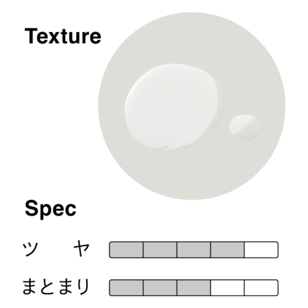 | ご使用方法 | 使用量の目安(ミディアム):1円玉大2個分(付け替えポンプ使用時5プッシュ) 1. 適量を手のひらや指の間によく伸ばします。 2. 髪の内側(後頭部・下)の根元付近~毛先へ指を通して塗布し、タイトに抑えます。 3. 手に残ったオイルを、髪の表面の根元付近から全体になじませて動きを出します。 |
