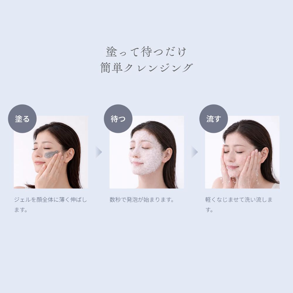 お肌になじませると自発的に泡立ち、メイクや余分な皮脂汚れを吸着しながら浮かせてやさしく包み込みます。