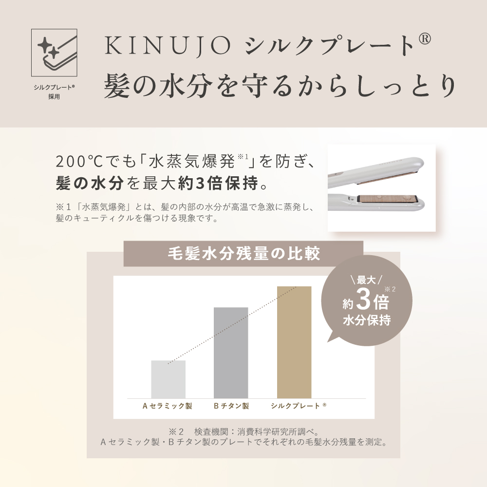 シルクプレートは200℃でも水蒸気爆発が起こらず、優れた保湿力で髪の水分を守ります。