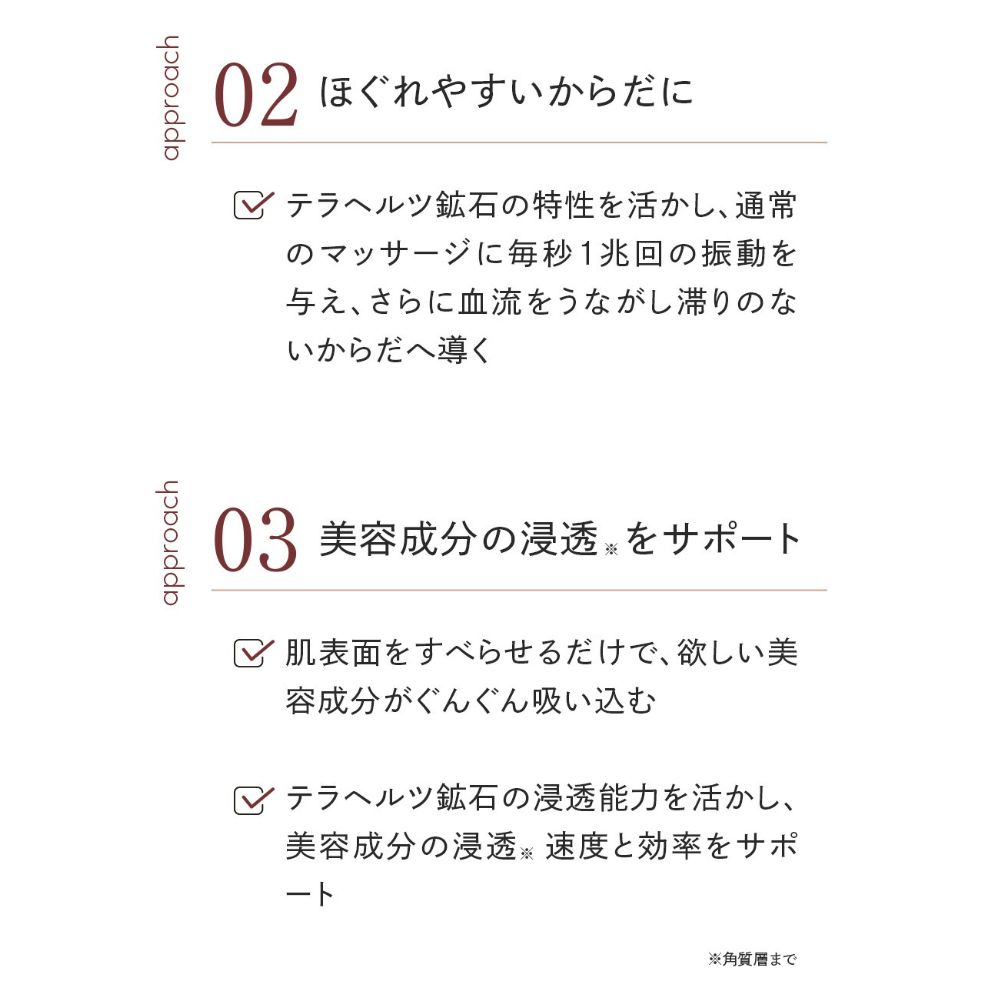 テラヘルツ鉱石の特性を相談、通常のマッサージに毎秒1兆回の振動を与え、さらに血流をうながし滞りのないからだへ導く